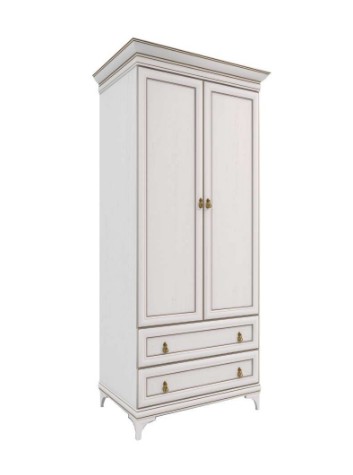 Прямой Белый шкаф-витрина имеет две двери и два выдвижных ящика с использованием механизма полного выдвижения и плавного закрывания, дно ящика выполнено из ЛДВП в цвет корпуса .