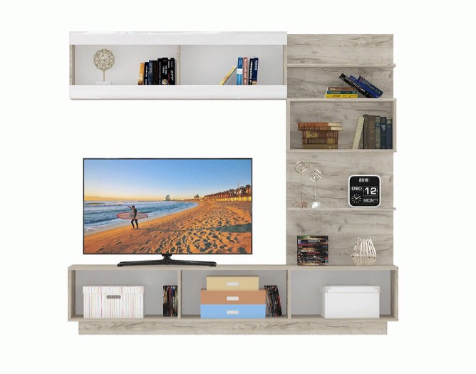 АТЛАНТА гостиная (Дуб Серый Крафт/Белый глянец)