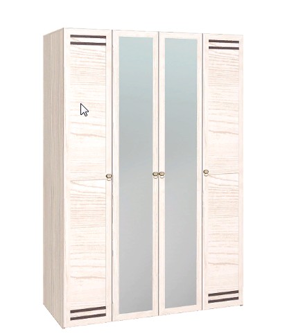 555 Шкаф для одежды и белья – четырехстворчатый платяной шкаф со стационарной штангой и полками для белья. Центральная часть фасада — зеркало в рамочном обрамлении во всю высоту, что позволяет увидеть свое отражение в полный рост. Изнутри зеркало покрыто специальной защитной пленкой, которая предотвратит падение осколков, если зеркало разобьется.