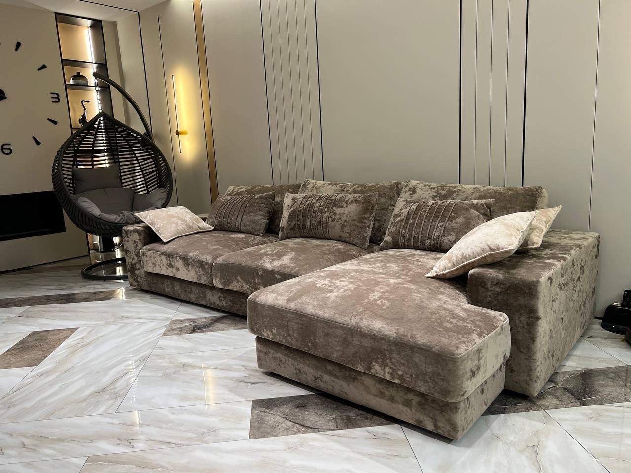 Диван Шерлок с оттоманкой 3300*1700-1160мм (оттоманка справа) (Ткань Эрика Шуга (Текстиль Плюс))