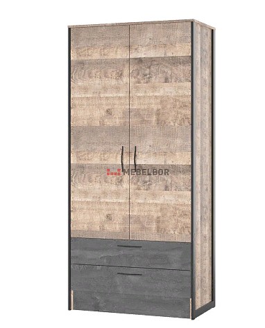 HUGO шкаф 2-х дверный 72505192 (Дуб Гранж/Железный камень)