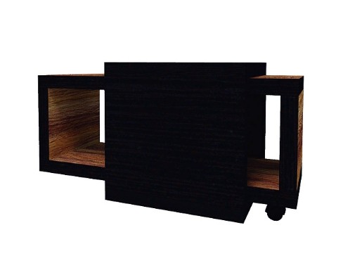 Журнальный столик состоит из двух элементов: тот, что на колесных опорах – выдвигается. Таким образом увеличивается площадь столешницы для чаепития, когда приходят гости. Стол полностью выполнен из сэндвич-панелей толщиной 50 мм.