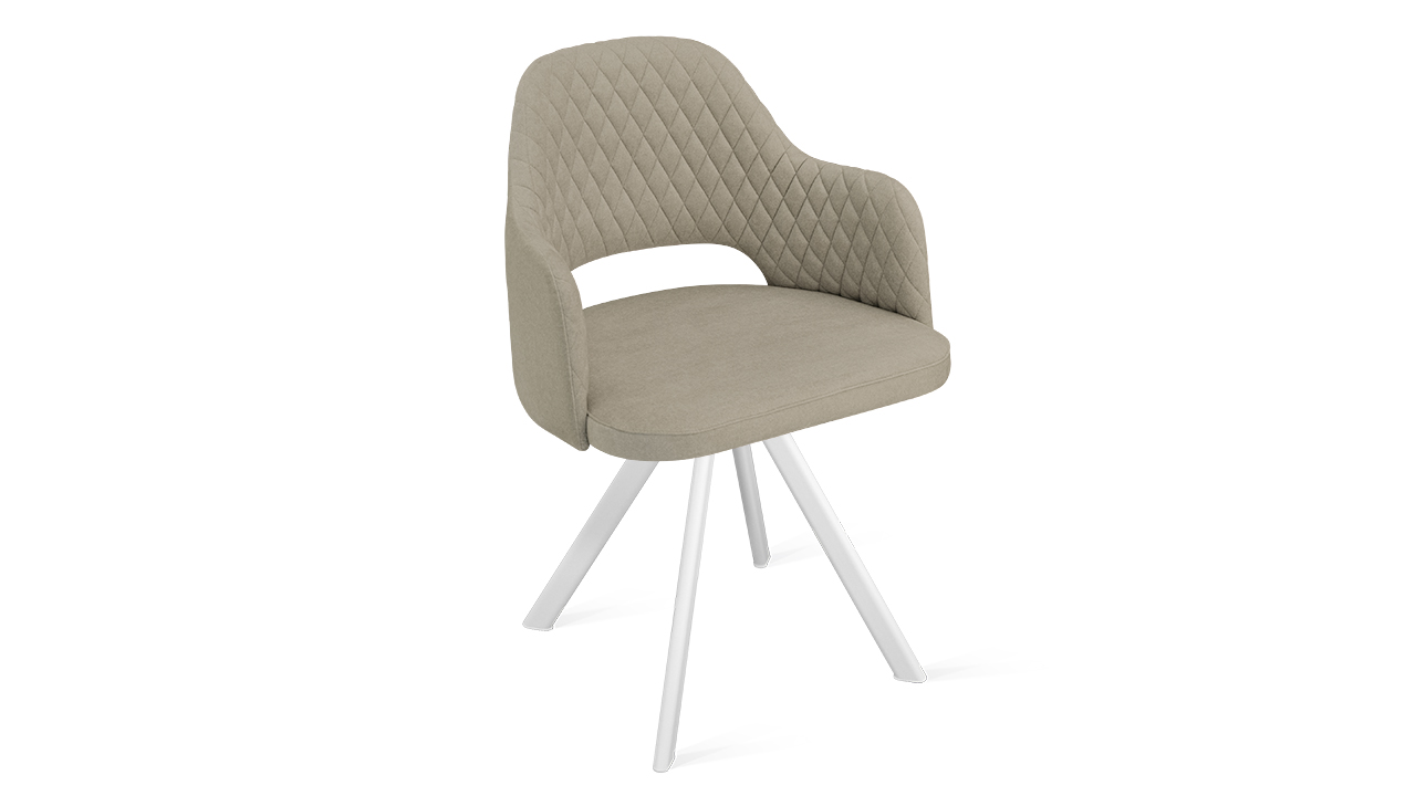 Эргономичный дизайн этой изящной модели с мягкой обивкой и подлокотниками позволит долгое время сохранять комфортное положение тела. Обивка украшена ромбовидной декоративной прострочкой на внутренней стороне спинки. Стул вдохнет в интерьер свежие и неординарные нотки. Стулья этой модели прекрасно будут смотреться в качестве элементов обеденной группы и станут гармоничным дополнением современного интерьера.Надежная опора — это металлические ножки с порошковым покрытием. Они расставлены под углом, что гарантирует максимальную устойчивость конструкции. Каркас окрашен в матовые глубокие цвета «Черный муар» и «Белый матовый».Модели имеют удобное посадочное место. Сиденья стульев, в основе которых используется фанера, служат хорошей опорой для тела и позволят сидеть комфортно длительный период времени. Наполнение из ППУ придаст дополнительную мягкость изделиям.