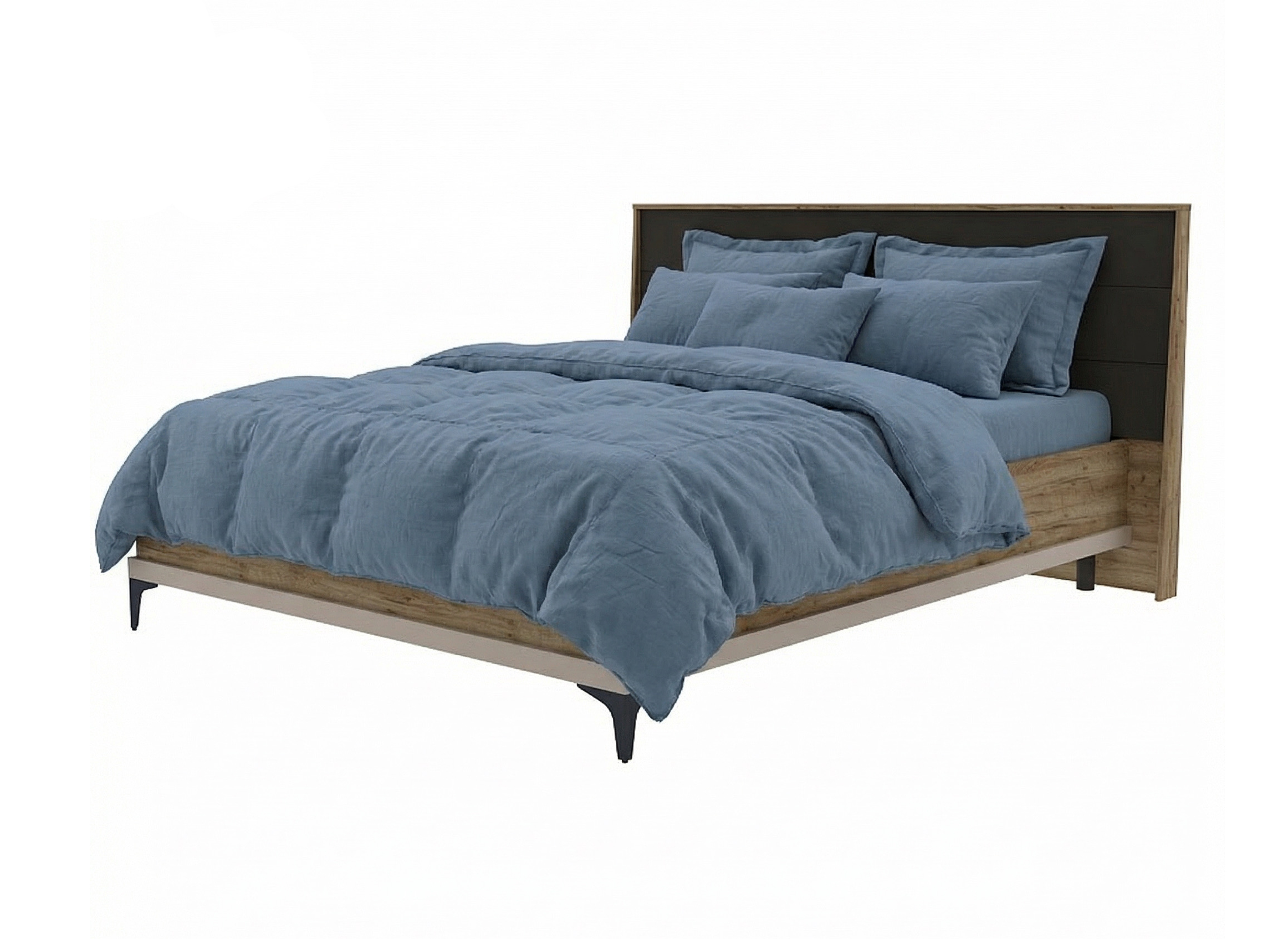 Коллекция выполнена из ЛДСП 18мм в контрастном сочетании декоров Дуб Табачный и Велюр. Изголовье кровати щитовое, сборное из горизонтальных вставок из ЛДСП "Темно-серый". В комплектацию кровати входит стационарное ортопедическое основание МЕТАЛЛ.