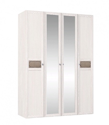 Вместительный шкаф, благодаря современным планировкам квартир, всегда найдет свое место в спальне. Внутреннее наполнение четырехдверного шкафа из коллекции Карина продумано для гардероба семейной пары: две стационарные штанги длиной 777 мм позволят развесить мужскую и женскую одежду раздельно, на боковых стеллажах с регулируемыми полками разместятся вещи, которые можно складывать. Рамочный фасад украшен профилем МДФ изысканной конфигурации и декоративной вставкой, обтянутой бархатной тканью приглушенного оттенка. Рельеф на вставке гармонирует с изголовьем кровати спального гарнитура Карина. Два центральных фасада с зеркалами в полный рост позволят рассмотреть свое отражение без помех. Шкаф крепится к стене за подвесы. Регулируемые опоры позволят компенсировать незначительные неровности пола. Фасады перенавешиваются, их можно установить в том порядке, который вам нравится больше всего.