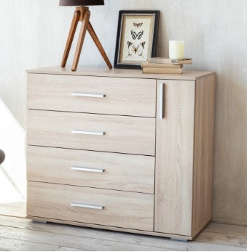 Комод Innovo – классического, сдержанного дизайна, дополнит любой интерьер и сделает его более функциональным. 4 горизонтальных ящика предназначены для хранения личных вещей. «Изюминка» и универсальность комода – в пятом, вертикальном ящике. Серебристые ручки и скрытая фурнитура создают внешнюю эстетику.Комод станет хорошим решением для детской комнаты. Материал, из которого сделана мебель, по свойствам сравним с натуральным деревом и соответствует высоким международным стандартам качества. Современные декоры ЛДСП устойчивы к царапинам и пятнам, не выгорают на солнце.