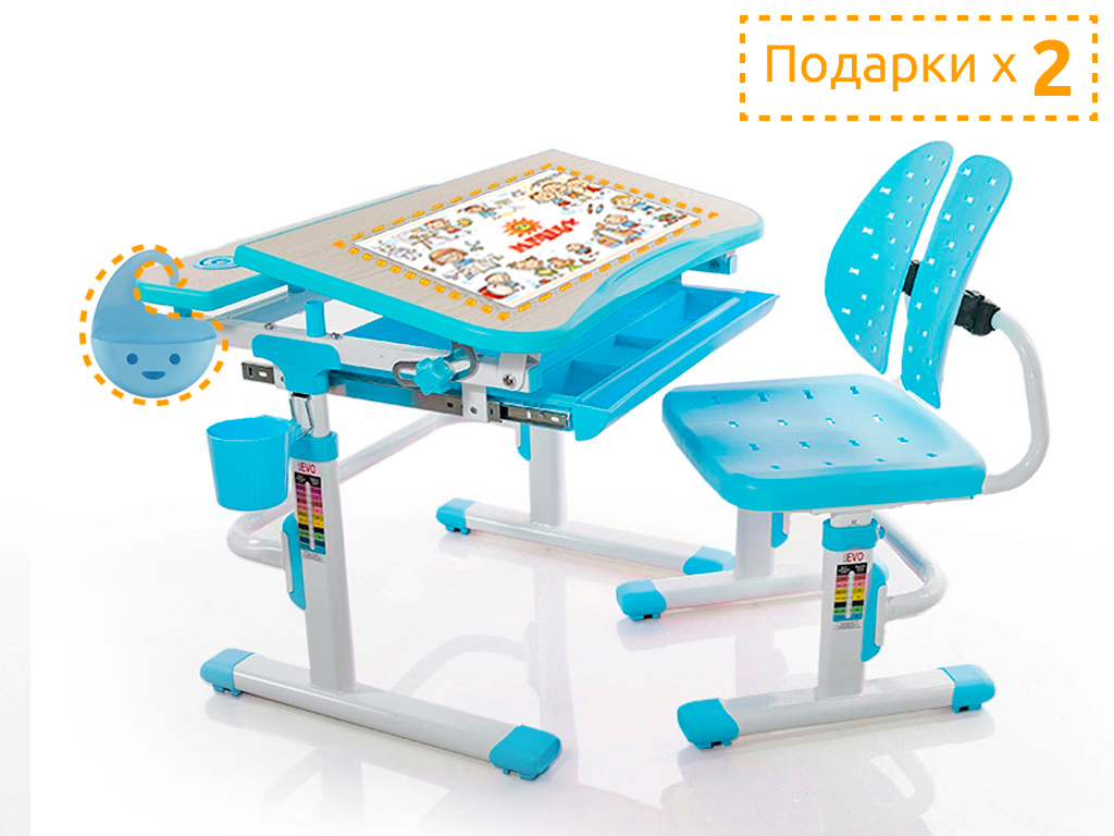 Пеналы для удобной организации рабочего пространства ребенка.Выдвижной ящик - органайзер для канц-товаров, что бы все было под рукой.Крючок - для портфеля, учебники всегда рядом.Фиксаторы столешницы, а так же газ-лифт для плавной и легкой смены угла наклона.Изменяемая глубина спинки - что позволит более точно адаптировать стульчик под ребенка.Всё это в одном комплекте Mealux EVO-05!