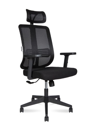Офисное кресло с высокой спинкой, регулируемый по высоте подголовником, спинка сетка, сиденье фармованое ПУ, пластиковый подлокотник 2 D, механизм Топ Ган с фиксацией в одном положении, Нейлоновая база, ролики ПУ