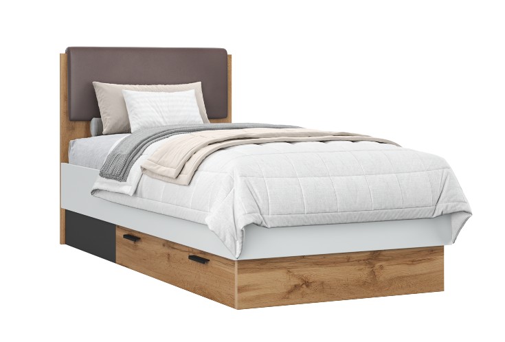 Мали Мод.МЛ-6а Кровать (спальное место 900х2000) ТАХТА НЕ ТРЕБУЕТСЯ (лам.белый- дуб вотан- графит)