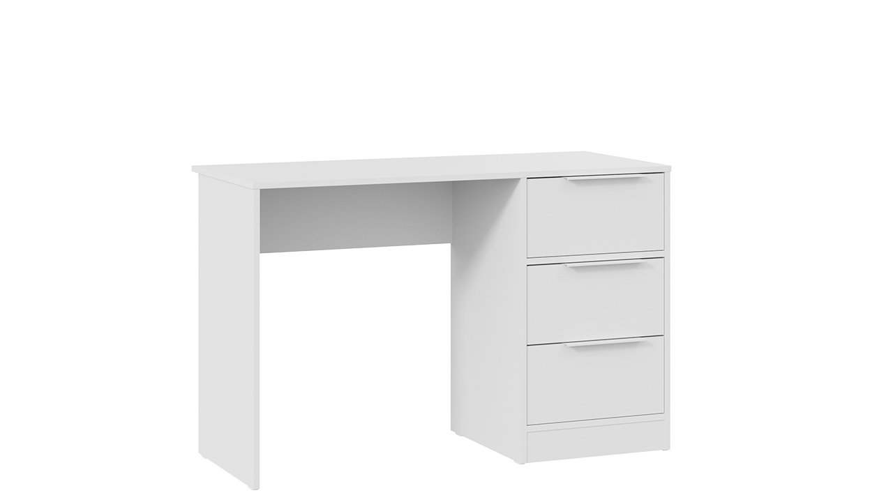Современный письменный стол с тумбой и тремя выдвижными ящиками - оптимальный вариант для работы и учебы. Сборка универсальная: тумба может быть расположена как с левой, так и с правой стороны. Максимальная нагрузка на столешницу: 15 кг.Максимальная нагрузка на ящик: 3 кг.Стол поставляется в разобранном виде.