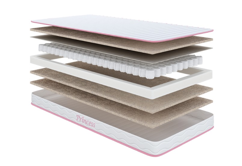 Матрас Princess с блоком независимых пружин двумя сторонами разной жесткости, изготовленный из натуральных материалов - идеально подойдет для гармоничного развития позвоночника детей от 5 лет. В основе матраса: блок независимых маленьких пружин «Minipocket» - деликатно поддержит детский растущий позвоночник, снимет мышечное напряжение и поспособствует быстрому засыпанию вашего малыша; двусторонняя поверхность - позволит самостоятельно выбирать жёсткость матраса; жесткая сторона толщиной 2 см, точно повторит контуры тела, обеспечивая бережную поддержку детского позвоночника; полужесткая сторона на основе натурального льняного полотна, в сочетании с кокосом (сизалем), создает упругое и безупречное спальное место; качественная трикотажная ткань со стежкой — поддержит оптимальный воздухообмен, повысит комфорт при эксплуатации. Преимущества: изготовлен из безопасных для здоровья материалов, не вызывает аллергических реакций; эксклюзивный дизайн специально для маленьких принцесс — розовая окантовка матраса.