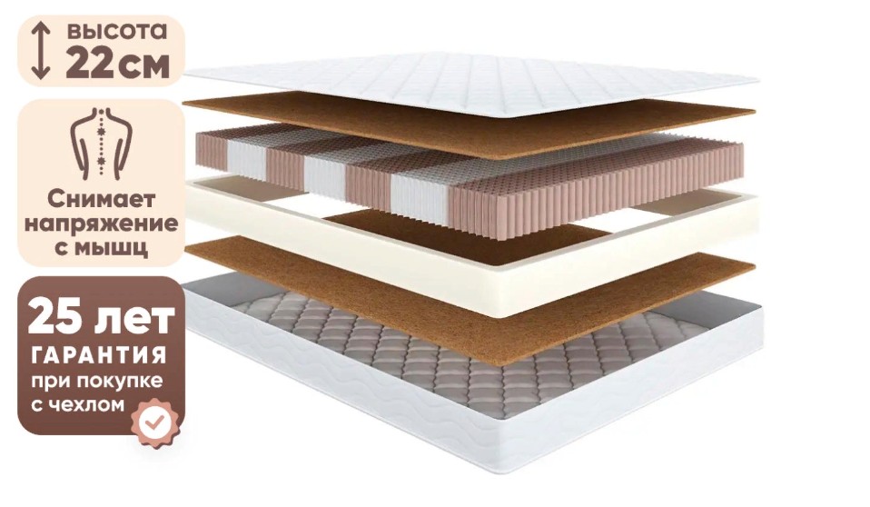 Пружинная система "Multipocket", кокосовое волокно, пена с массажным эффектом, латекс