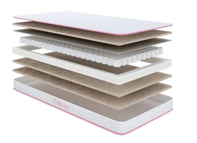 Матрас Princess с блоком независимых пружин двумя сторонами разной жесткости, изготовленный из натуральных материалов - идеально подойдет для гармоничного развития позвоночника детей от 5 лет. В основе матраса: блок независимых маленьких пружин «Minipocket» - деликатно поддержит детский растущий позвоночник, снимет мышечное напряжение и поспособствует быстрому засыпанию вашего малыша; двусторонняя поверхность - позволит самостоятельно выбирать жёсткость матраса; жесткая сторона толщиной 2 см, точно повторит контуры тела, обеспечивая бережную поддержку детского позвоночника; полужесткая сторона на основе натурального льняного полотна, в сочетании с кокосом (сизалем), создает упругое и безупречное спальное место; качественная трикотажная ткань со стежкой — поддержит оптимальный воздухообмен, повысит комфорт при эксплуатации. Преимущества: изготовлен из безопасных для здоровья материалов, не вызывает аллергических реакций; эксклюзивный дизайн специально для маленьких принцесс — розовая окантовка матраса.