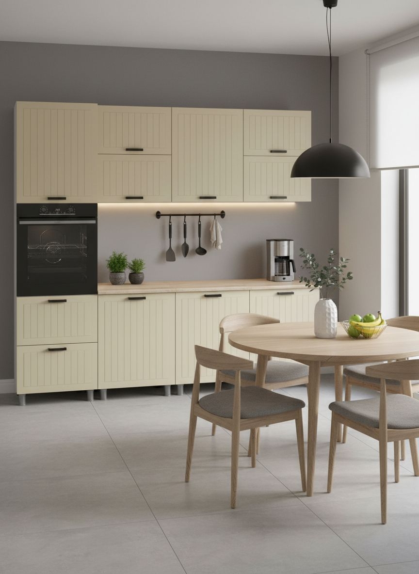 Характеристики:— Материал фасада: МДФ + пленка ПВХ (производство: Корея)— Материал корпуса: ЛДСП, Белый 16 ммФурнитура:— Шариковые направляющие, усиленные (до 50 кг)— Навес мебельный для верхних модулей (Краб)— Петли без доводчика, усиленные— Лицевые, модельные опоры, регулируемые (100 – 120 мм), цвет: Серебро— Задние, технические опоры, регулируемые (100 – 120 мм), цвет: Черный— Ручка скоба пластик, цвет: Черный матовый