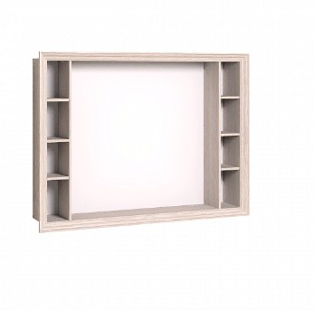 Панель под ТВ в обрамлении декоративного профиля МДФ — дизайнерское решение, позволяющее совместить классический интерьер с современной техникой. Стандартные габаритные размеры ниши позволяют разместить телевизор диагональю до 42”: высота ниши 1011 мм, ширина - 1078 мм. Панель входит в программу Ширина ВРАЗМЕР, поэтому ее габариты можно уменьшить или увеличить на 150 мм с шагом в 1 мм. Это значит, что, воспользовавшись услугой в сторону увеличения, на панели можно разместить экран диагональю до 46''. Сам телевизор крепится согласно инструкции на кронштейн, который нужно подбирать индивидуально под диагональ телевизора в специализированном магазине (не идет в комплекте). Верхняя и нижняя полки боковых стеллажей съемные, они устанавливаются на полкодержатели. Их можно убрать и получившиеся высокие ниши использовать для размещения аудио-колонок. Нагрузка на Панель ТВ не должна превышать предусмотренных конструкцией нагрузок: 3 кг на маленькие боковые полки и 15 кг на нижнюю горизонтальную полку. вес панели 41 кг