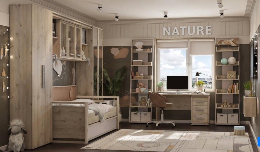 Современная мебель для детской или подростковой комнаты должна быть не только удобной и практичной, но и стильной. Молодежная коллекция Nature соответствует всем эти параметрам и способна удовлетворить любые требования нынешней молодежи.
