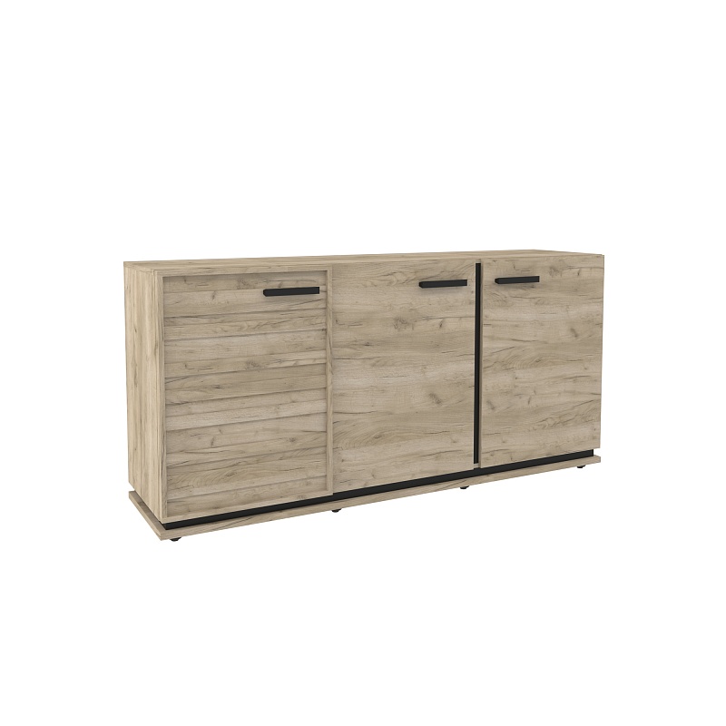 Тумба МЦН – функциональный модуль, который подходит не только для хранения вещей, но и для размещения телевизора. Тумба из трех отделений, за распашными дверцами которых полки, регулируемые по высоте. Изюминку тумбе придает необычный фасад в массивной раме и с раскладкой. Контрастные темные ручки из массива дерева подчеркивают цвет и текстуру натурального дерева. Регулируемые опоры компенсируют незначительные неровности пола.