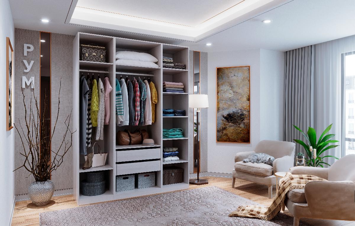 Современные мебельные конструкции эргономичны и функциональны.Одна из их  главных задач - помочь упорядочить быти позволить легко найти нужную вещь.В соответствии со всеми потребностями Клиентов,можно адаптировать новую Гардеробную систему.Три универсальных, самых востребованных для гардеробных варианта ДЕКОРА. Три вида шкафов которые позволят создать любой функциональный гардероб .Для организации внутреннего пространства, стенки гардероба имеют специальные присадки.По усмотрению Клиента ниши гардероба можно заполнить дополнительными элементами: - полками (комплект полок в размер