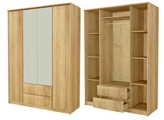 Лаконичный и функциональный шкаф для одежды и белья Шервуд Ш11 предоставит достаточно места для бережного и аккуратного хранения всего вашего гардероба. За зеркальными дверцами шкафа находится широкая штанга для вешалок-плечиков с красивыми платьями и деловыми костюмами. Множество полок, скрытых за глухими дверцами, пригодятся для одежды и белья. Два выдвижных ящика обладают необычайно вместительностью и могут использоваться для разнообразных аксессуаров.