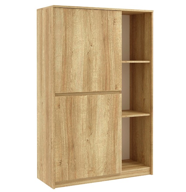 Тумба Ш18 – универсальный модуль, который может использоваться в гостиной или спальне. Выполнен в едином с коллекцией Шервуд современном стиле и комплектуется открытыми и закрытыми полками. Лицевая фурнитура отсутствует. Особенности • материал ЛДСП в цвете «ламинированный дуб ривьера» • декор с текстурой натурального дерева • закругленные кромки по технологии СОФТ
