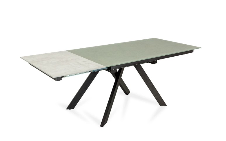 Прямоугольная столешница выполнена из тиснёного стекла толщиной 10 мм. со специальной обработкой. Поэтому столу не страшны царапины, пятна, сколы. Рельефное покрытие с имитацией камня отвечает за привлекательный внешний вид. Дополнительная вставка сделана из МДФ с меламиновым покрытием цвета керамики, плюсами которого являются также устойчивость к механическим повреждениям и простота в уходе. Эргономичная конструкция ножек из металла обеспечивает устойчивую опору для массивного верха. Стол Aris гармонично впишется в обеденную зону в стиле минимал, лофт, эклектика.