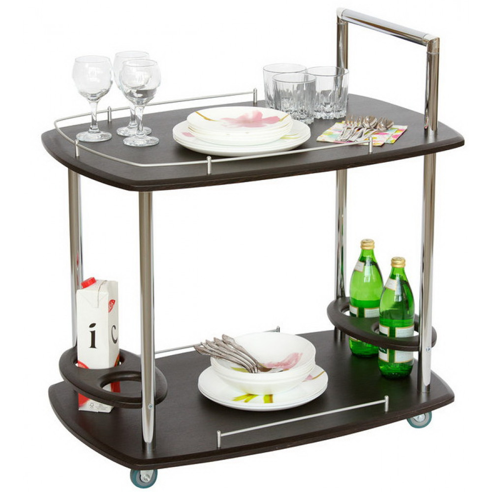 Если вы предпочитаете скучным ужинам на кухне удобную и уютную атмосферу ресторана, то сервировочный столик — это незаменимый помощник для вас. Изящные детали и классическая форма подчеркивают аристократичность данного предмета и создают атмосферу «dolche vita» в вашем доме. Столик оснащен держателями для бутылок, удобной ручкой и колесами для плавного, бесшумного и легкого перемещения. Модель «Эсперанс» выполнена из МДФ с хромированными металлическими деталями. Сервировочный столик будет прекрасным дополнением интерьера обеденной зоны. Продукция поставляется в разобранном виде, упакованная в гофрокартон. В комплект входит вся необходимая фурнитура и удобная инструкция для сборки.
