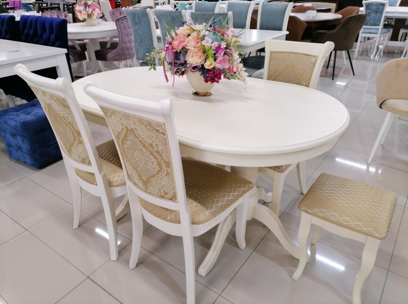 Классический стол "Валенсия" создан для ценителей таких стилей как прованс и классика. Размер стола 160см×90см. Плюс две вставки по 40 см! Стол раздвигается на 240см. ⠀Столешница выполнена из шпона дуба и выкрашена итальянской эмалью, и покрыта защитным лаком! Она никогда не разбухнет от воды!Мощные опоры из массива бука выдерживают до 200кг.
