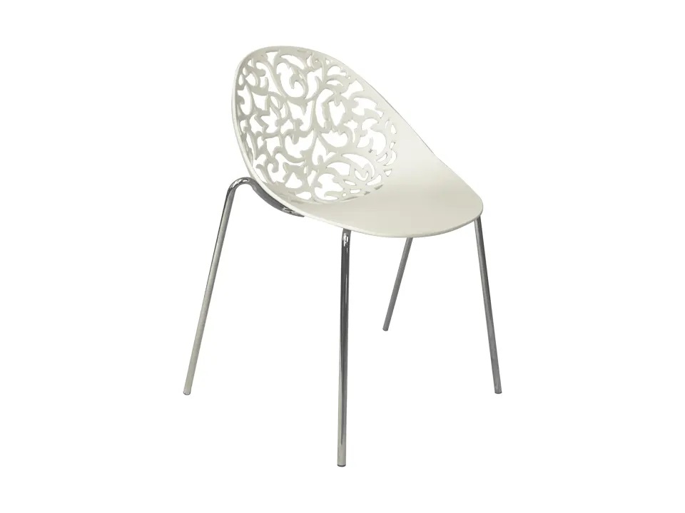 Пластиковый стул на металлических ножках. Наличие подпятников предохраняющих от царапания пола.