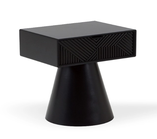 Столтк журнальный /Тумба прикроватная Parex отличается художественной эстетикой. Фишка — игра геометрии. Прямоугольная столешница с вкладным ящиком изящно балансирует на верхушке конуса. Можно использовать как необычную прикроватную тумбу, элегантный приставной столик в гостиной, вместо консоли, полочки для мелочей в прихожей.Фасад вкладного ящика украшен узором, который формируют трендовую «гофрированность». Скульптурная тумба Parex сама по себе является привлекательным элементом, который поможет в декорировании стильного пространства. Также она дает простор для проявления креативности. Сочетайте ее с различными вазами, лампами, статуэтками, подсвечниками, чтобы подчеркнуть уникальность интерьера.Материал столешницы и основания - МДФ. Ящик вкладной без направляющих.
