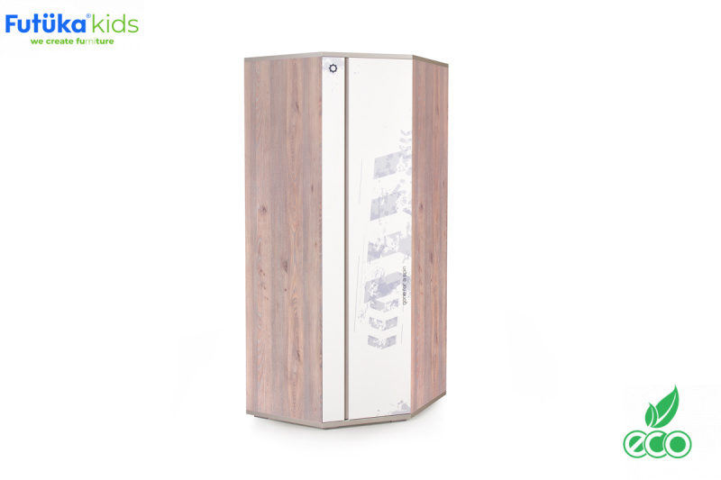 ОписаниеВ рамках серии корпусной мебели Q-bix от Futuka kids запущена новинка, которая решит задачу хранения в детской, даже если комната мала, а вещей много. Угловой шкаф Q-bix 41 выполняет несколько функций одновременно – гарантированный порядок, сэкономленные квадратные метры, эффектный интерьер. .Q-bix 41 имеет форму пятиугольника: шкаф идеально впишется в любой угол. Его фасад украшен стильным притом, лишен острых углов и выступов.Имея внушительные внутренние размеры, Q-bix 41 эргономичен и визуально компактен. Внутри оборудован просторным отделением со штангой для вешалок, двумя большими полками наверху и внизу, и рядом из шести маленьких полок во всю длину шкафа. Дверца не имеет ручки.Шкаф представлен в восьми цветах: красный, розовый, манго, желтый, лайм, синий, белый, черный. Цветные акценты в дизайне модели: абстрактный автомобильный принт и декоративная планка на фасаде.Также для модели разработан эксклюзивный дизайн wood: боковины и декоративная планка стилизованы под дерево.